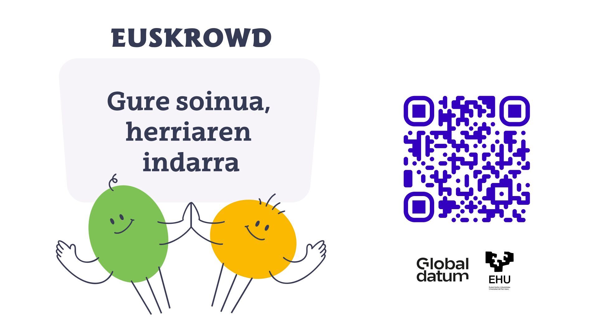 EHUk bultzatutako egitasmoa da Euskrowd, euskararen etorkizun digitala bultzatzeko sortutakoa, eta ekimenaren bultzatzaileen esanetan, aplikazioaren helburua zera da: etorkizun hurbilean gailu digitalek euskara bere aberastasun, euskalki eta adierazteko modu guztietan ulertzea. Horretarako, baina, ezinbestekoa dute euskal hiztunen laguntza. Hala, aplikazioaren bidez grabazioak egiteko eskatu diete herritarrei, eta zehaztu dute edozein pertsonak parte hartzu dezakeela egitasmoan, "galdera errazak eginez edo euskarazko komandoak emanez".
