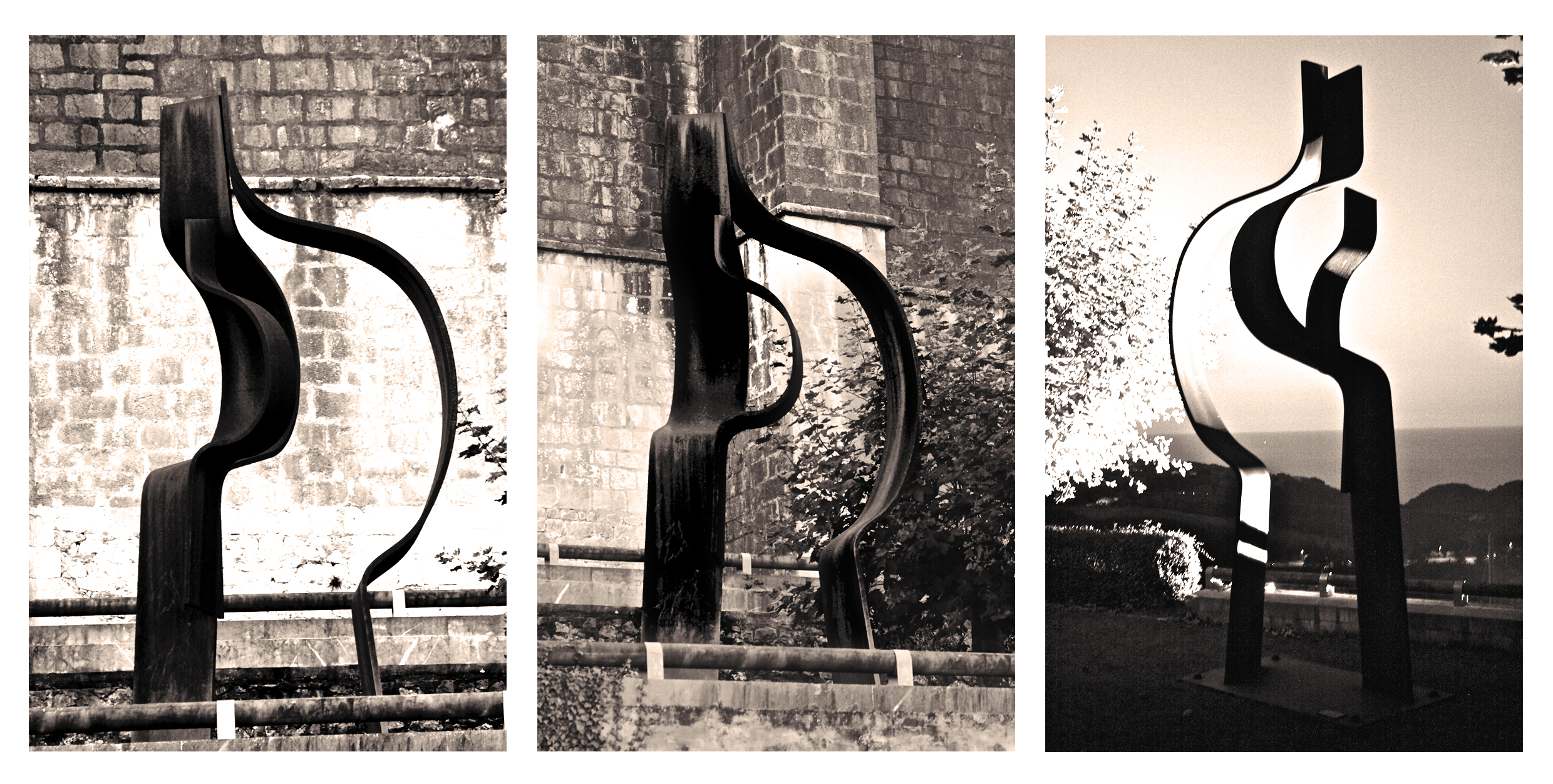 Corten altzairuz egindako hiru plantxaz osatua dago eskultura, gorantz bihurrituz zuzendutako hiru elementurekin. Pieza honen berezitasuna ikuslearen perspektiban dago: ikuspegiaren arabera, Amabirjinaren amatasunaren hiru fase desberdin irudikatzen ditu. Alde batetik, haurdun dagoen emakumearen sabela antzeman daiteke; bestetik, amaren sabelean dagoen haurra; eta, azkenik, haurra altzoan duen Amabirjinaren irudi klasikoa.