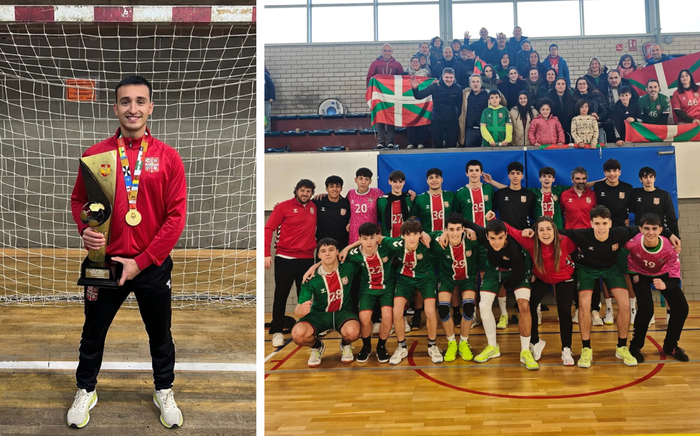 Barrena, jubenilen koparekin; eta Atxa (28) eta Lopez (32), gainontzeko kadeteekin. Argazkiak: @ib.fisio, Euskal Eskubaloi Federazioa.