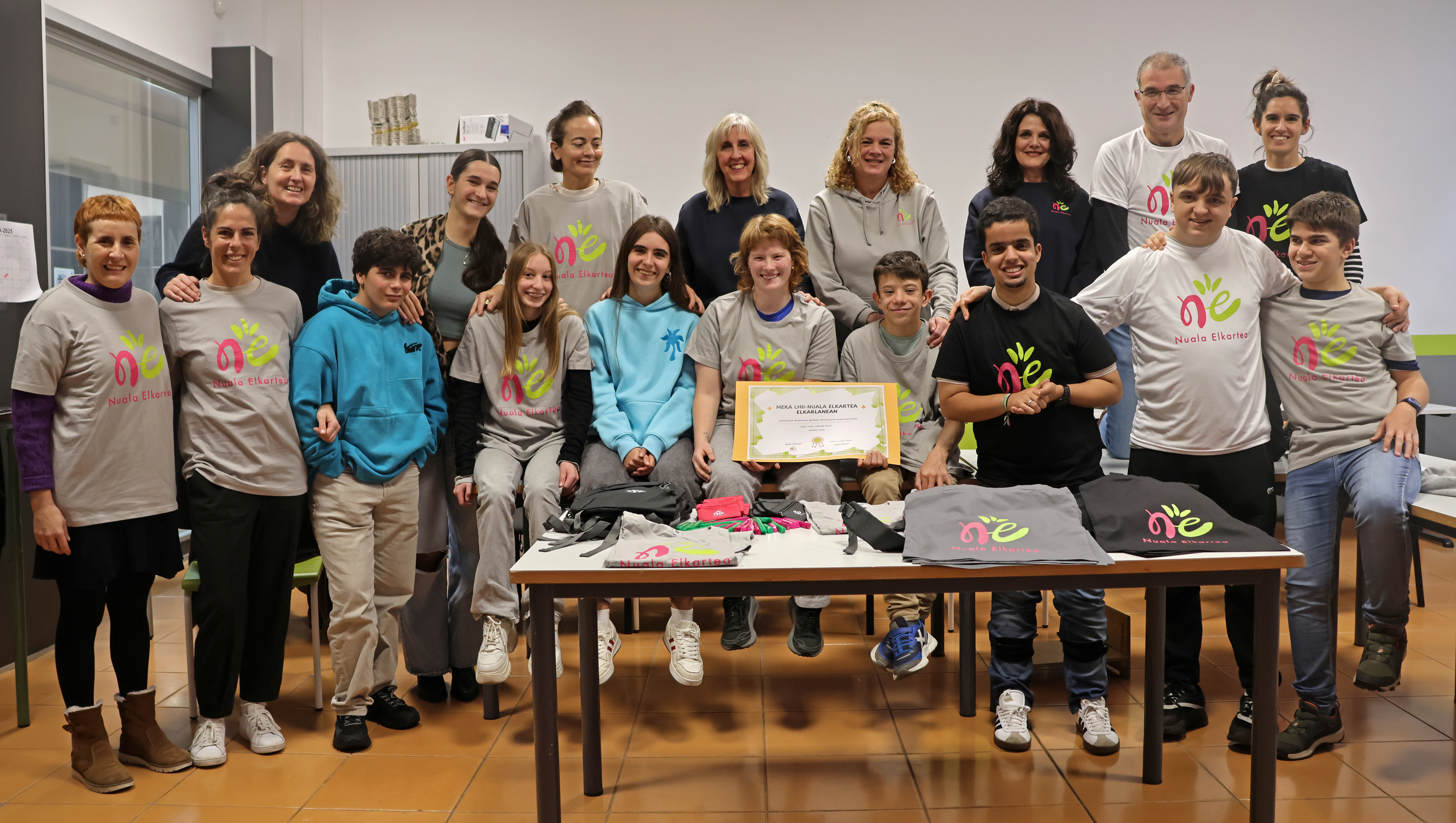 "Askotarikoak gara eta ezberdinak, eta, inguruak ezartzen dizkigun eskakizun, muga edo zailtasunen arabera, aniztasun funtzional gehiago edo gutxiago izaten ditugu". Begi-bistakoa dirudi, baina nahi baino gehiagotan errepikatzera behartuta sentitzen dira Nuala elkartekoak oraindik ere, eta hala hasi zuen aurkezpena elkarteko kide Miriam Aldazabalek, azaroaren hondarrean Meka ikastetxera egindako bisitan. Orduko entzuleak ulerberagoak zituen, baina. Izan ere, oinarrizko Lanbide Heziketa egokituko ikasleen eta irakasleen aurrean ari zen Aldazabal. "Denok dauzkagu gure gaitasunak eta mugak, eta pertsona guztiongan pentsatzen badugu, ikuspegi global eta inklusibo batetik begiratzen ikasten baldin badugu, oso funtzionalak izango gara", zehaztu zuen. Mezua argia zen: aniztasun funtzionala duten pertsonek gainerako herritarren aukera berberez gozatzeko bermea izan behar dute. Eta, zalantzarik gabe, hezkuntzarako eskubidea da bermatu beharreko kontu oinarrizkoetako bat. Hala sinistuta daude Elgoibarko Meka ikastetxean.