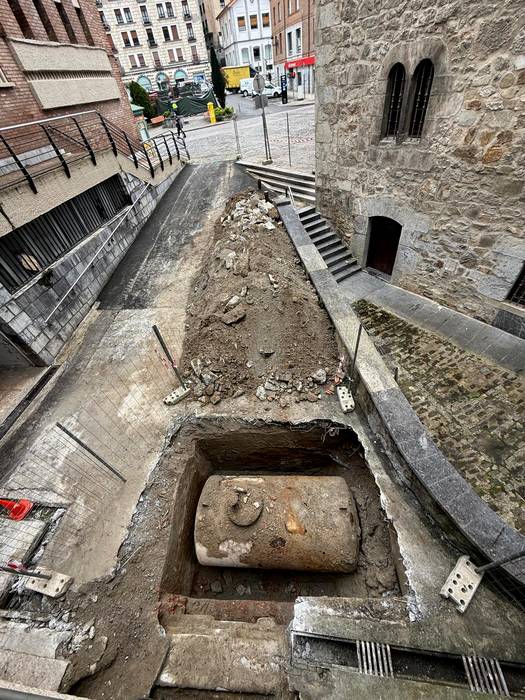 Obrak hasi eta berehala hasi ziren lur azpiko sekretuak azaleratzen: San Frantzisko iturri azpian garai bateko komunak izandakoen arrastoak azaldu ziren lehenengo, eta orain, garai bateko gasolio-depositua bistaratu da Merkatu Plaza azpian. 70eko hamarkadan eraiki zuten anbulatorioko berogailu-sistema elikatzen zuen depositua da. Hodi batzuk zituen Merkatu Plaza aldera, eta kontu handiz aritu behar izan dute langileek. Hainbat egunez egon da objektua Kultur Etxearen atzeko aldapan, eta herritarren interesa piztu du.