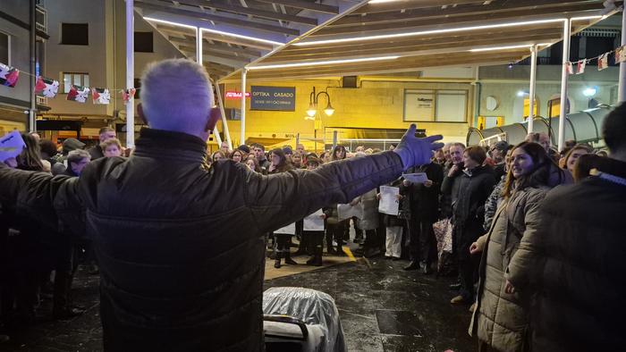 Bi hamarkadatik gorako ibilbidea eginda, abenduaren 24 gaueko kantu juntadizoa estimazio handia du herritar asko eta askoren artean: iluntzeko lagun artearen ostean, batu Patxi plazan eta lauzpabost Gabon kanta elkarrekin abestearena ohitura bihurtuta dago. Euriak aurten aterpe bat bilatzea eskatu zuen eta plazara lekualdatu behar izan zen ekitaldia. Lagun ugari batu zen, inoizko aldra kopurutsuena eta lekuak eskaintzen duen zabaltasuna eta aterpea kontuan hartuta, datorren urterako ere bertan egitea erabaki zen ekitaldi amaieran.
