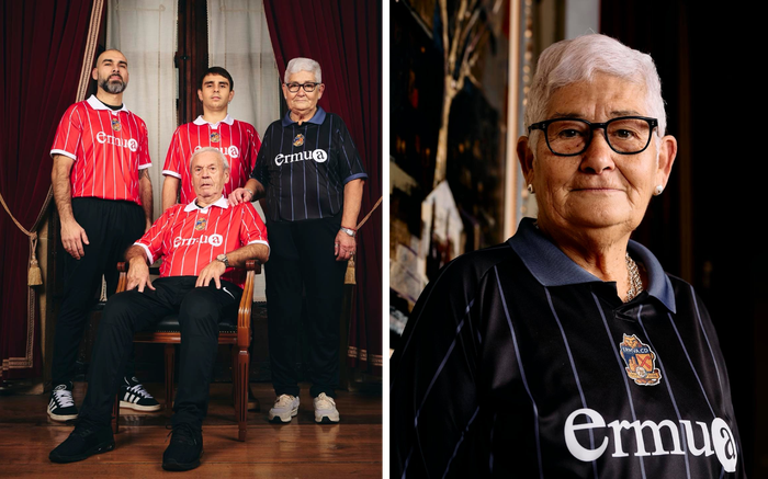 Elastikoa aurkezteko argazki-saioan Ermua CDren zale eta jokalariak aritu dira modelo, tartean emakumezkoen lehenengo taldea sortu zenean atezain jokatu zuen Ana Delgado ermuarra (debut eguneko argazkia ikusgai Barrena.eus-en Komunitateko Aspaldiko argazkiak blogean).