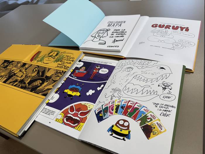 Liburutegia girotzeko, arduradunek lau erakusketa jarri dituzte eraikinaren hainbat lekutan, komikiaren eta nobela grafikoaren esparruan argitaratu diren azken lanak eta kalitate handiko lanak ezagutzera emateko. Horietako bat nagusien atalean dago, beste bat umeen gunean, beste bat gazteen txokoan –mangaren gaian zentratuta– eta beste bat bigarren solairuan, sarrera ondoan.