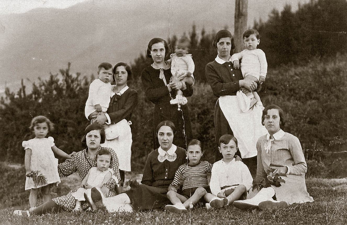 - Beheko ilaran, ezkerretik eskumara: Esther Barrutia, Modesta Etxeberria, Consuelo Barrutia, Maria Retolaza, Ernesto Zubiaurre, Pedro Jose Arriola eta Pakita Etxeberria.