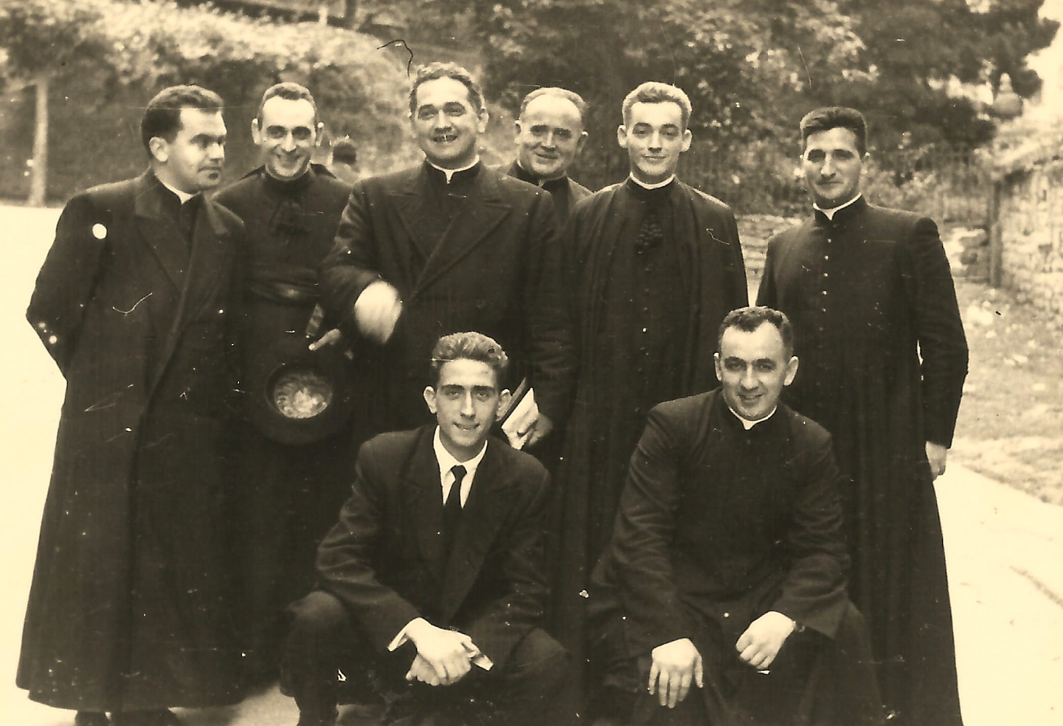Hainbat sotanadun ageri dira erretratuan, Ermuko parrokiako ardurak euretako batzuen artean partekatzen zituztenak. Argazkiari ezkerretik eskumara begiratuta, tente daude, Lucio Urreta, (…), Teodoro Zuazua, (…), Ion Idigoras eta Lorenzo Salaberria. Belauniko Miguel Mari Saenz de Cabezón (seminarista une horretan) eta Diego Garagorri.