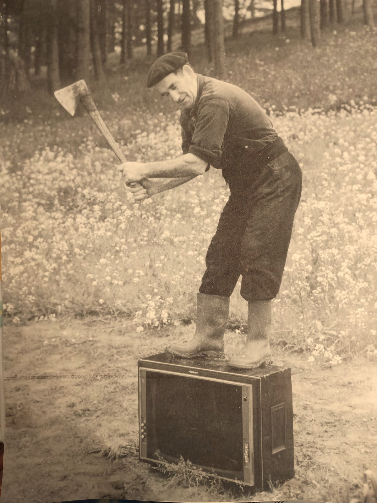 Euskal Birusa taldeko lagunen burutazioa izan zen, eta Iñaki Arregi eta Ignacio Pérez gerturatu ziren bere etxeraino, Fermiñenera. Mezu argi bat nahi zuten helarazi kartelaren bitartez: apurtu telebistak eta zabaldu liburuak. Aurretik berba eginda zuten eurok jiratuko zutela aparailua eta Inter zaharkote pisutsu hura kotxean sartu eta pozarren presentatu ziren Goitondon.