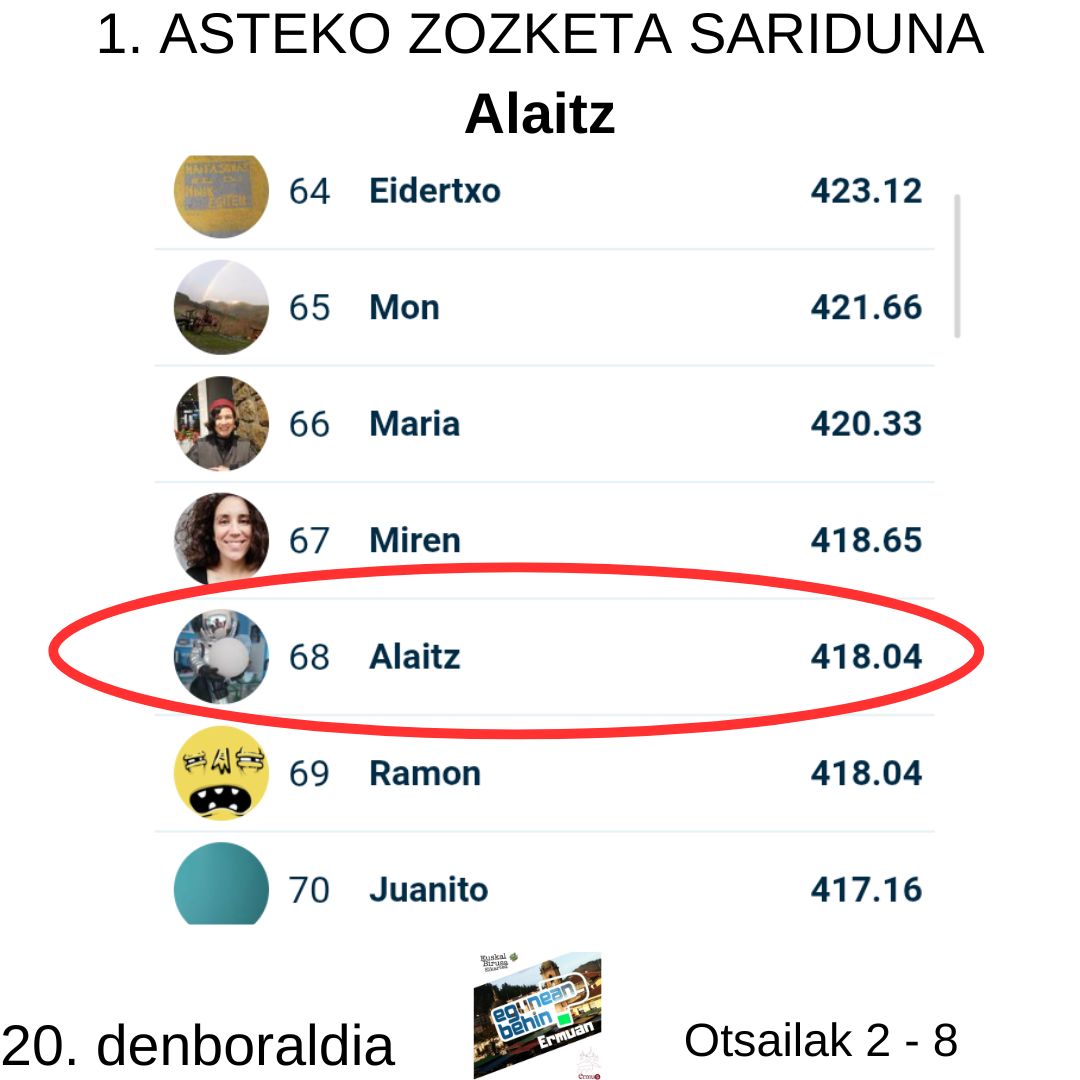 Oharra: saria jasotzeko, jarri harremanetan gurekin euskalbirusa@gmail.com helbidean edo 688632874