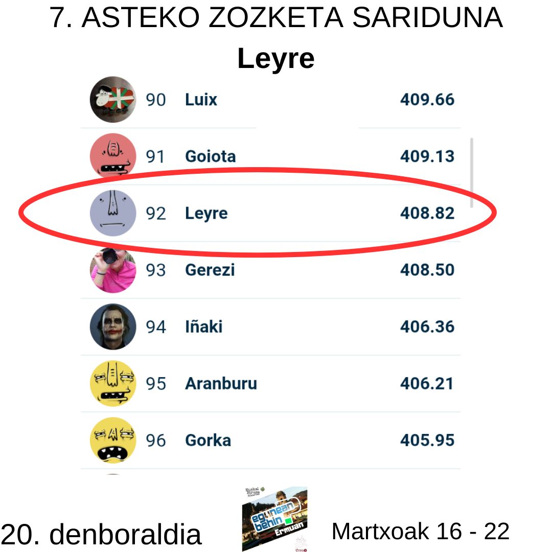 Egunero jokatu dutenen arteko zozketan, 92. postuan geratu denari tokatu zaio saria: Leyre, bera, 40 €-ko Ermuko Dendarien Elkarteko dendaren batean erabiltzeko.