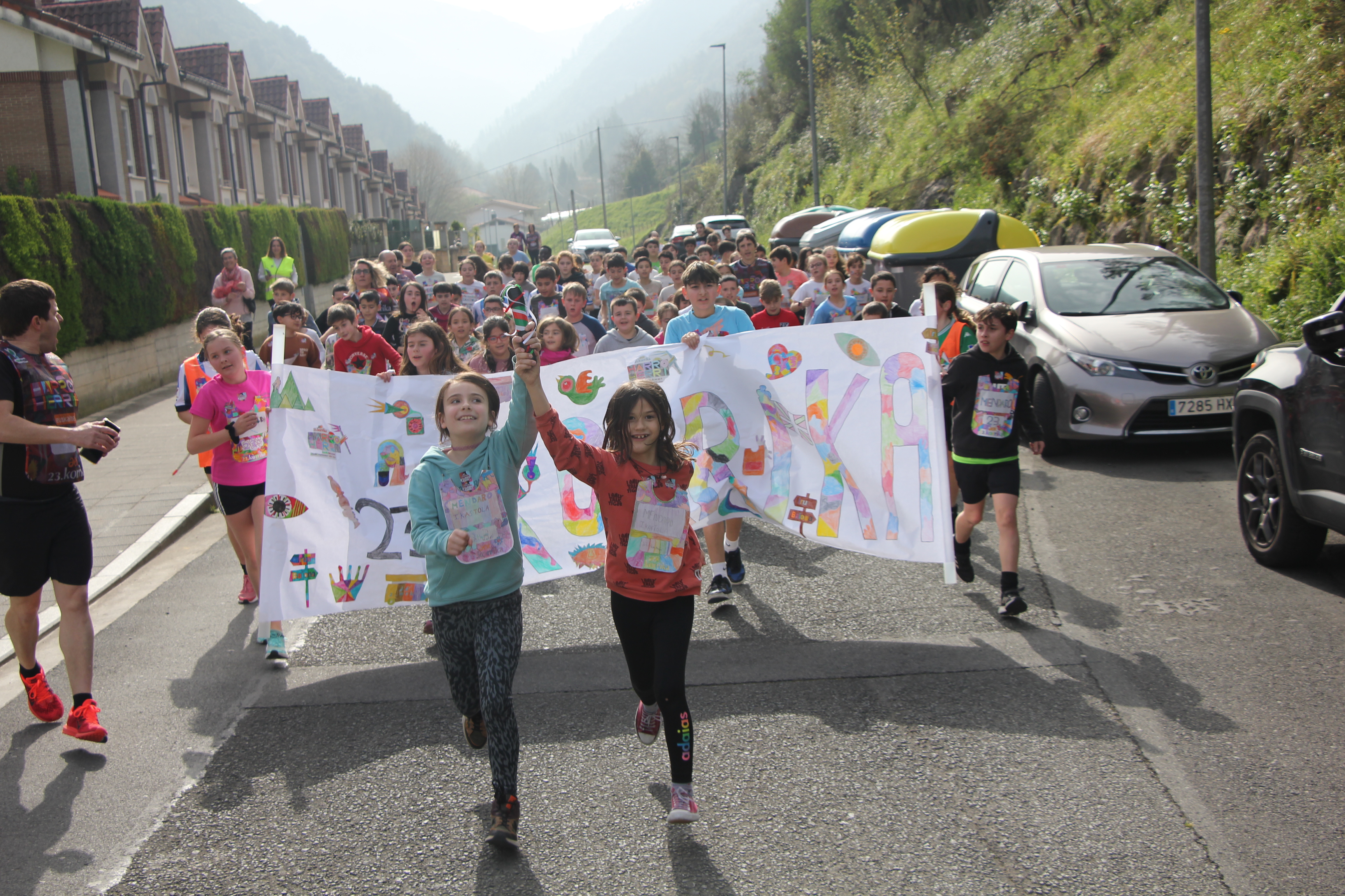 09:00etan hasiko dituzte Korrika txikirako girotze jarduerak ikastetxean. Korrika ofiziala ikusiko dute pantailetan, eta abestia jarri eta koreografia ere dantzatuko dute geletan. 2024ko Korrika txikiko bideoa ere jarriko diete irakasleek eskola-umeei, eta 10:00etan Trinitera igoko dira bertsoak kantatzera, joaldunen atzetik. 10:30ean, berriz, hamaiketakoa egingo dute ikastetxeko jolastokian, eta 11:00etan talde bakoitza bere lekura abiatuko dira. 11:15ean hasiko dute Korrika txikia, eta ondorengo ibilbidea osatuko dute: eskolatik hasi eta tren geltoki paretik aurrera egingo dute Garagartzara auzoraino. Handik, Moxua pareraino igoko dira, eta txaletetatik buelta eman eta udaletxe pareraino iritsiko dira. Udaletxeari buelta eman, eta farmazia paretik Coviran denda artekoa osatuko dute, eta handik, aldapan behera eginda, eskolara itzuliko dira. Bidean, eskuz esku erabiliko dute lekukoa. Maila bakoitzeko bi ordezkarik eramango dute lekukoa, eta seigarren mailakoek eramango dute pankarta.