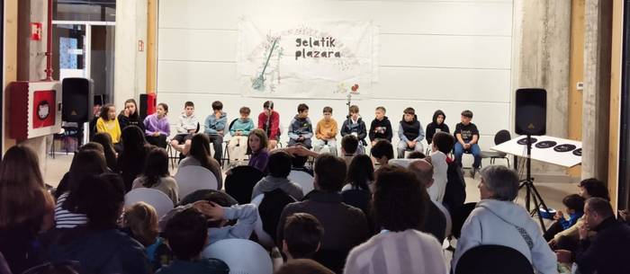 Bi maila ezberdinetan parte hartu dute 14 urtez azpiko bertsolariek Gelatik Plazara sariketan: LH mailan eta DBH mailan. 2-4 lagunez osaturiko taldeetan batuta, tokian tokiko bertso eskolak saio berean elkartu eta elkar ezagutzeko aukera izan du dute saioetan, eta guztira 250 bat bertsolari gaztek parte hartu du. Gaur, LHko finala izan dute Lazkaon, Lazkao Txiki gogoan haren jaioterrian ospatu duten Gipuzkoako Bertso Eskolen Egunaren baitan. Debabarrenetik hiru ikasle aritu dira bertan kantuan. Agurra etxetik prestatuta eraman dute guztiek, eta gainerakoan, bat-bateko ariketan jardun dira gaztetxoak, zein baino zein hobeto. Sariketa Donostiako taldeak irabazi du. Arg: Jon Larrañaga eta Jabi Muñoz.