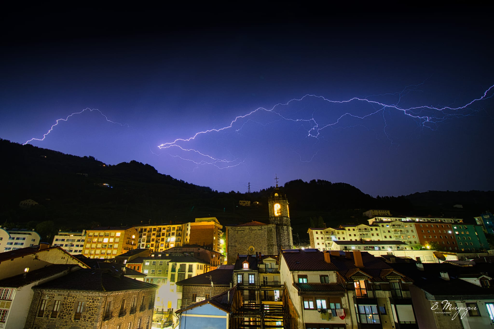 Atzo, iluntzean, ekaitzak lehertu zuen eta berarekin ekarri zituen oinaztu mordoa. Horietako hainbat harrapatu zituen Bittor Murguzurrek bere kamerarekin eta erretratu ederra partekatu du. 22:00ak aldera ateratako argazkia da.